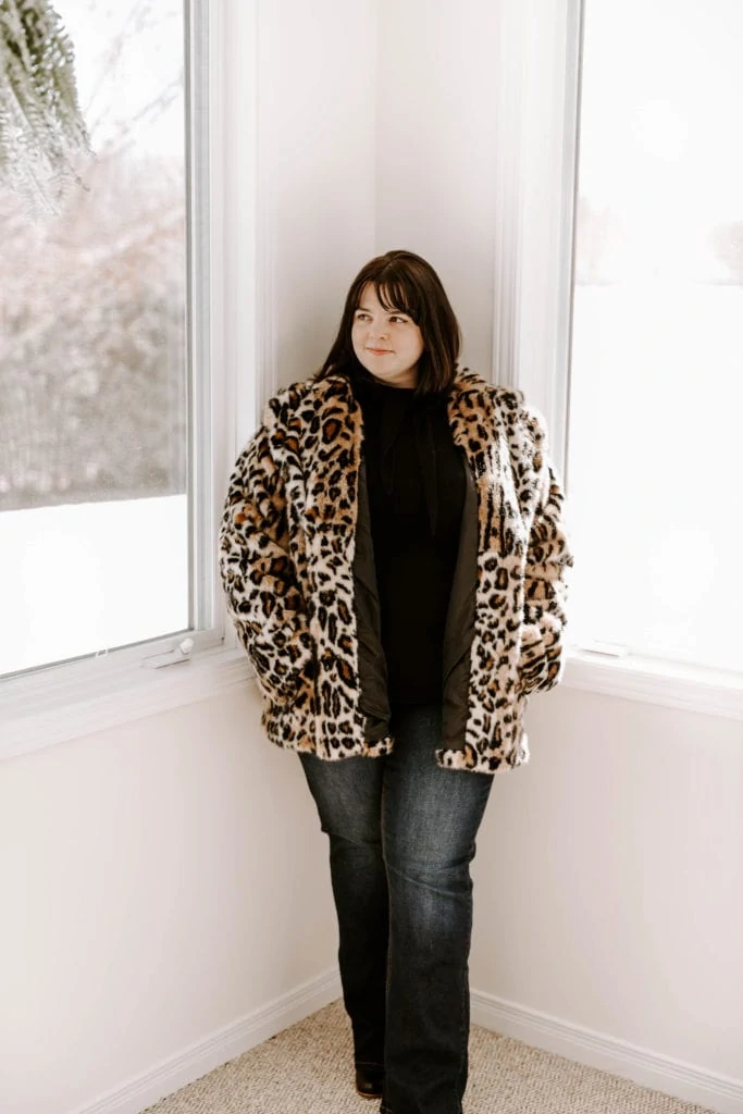 I’ve been doing a lot of thinking since Fashion Revolution Week about what I can do to make my wardrobe more ethical and sustainable. I’ll be writing about that in the coming weeks, and looking at ways that I can incorporate slow fashion into my blog. But as we are leaving the cold weather behind and saying hello to spring, today I wanted to share the star of my wardrobe this winter before I put it away for the year: the leopard-print faux fur coat of my dreams.